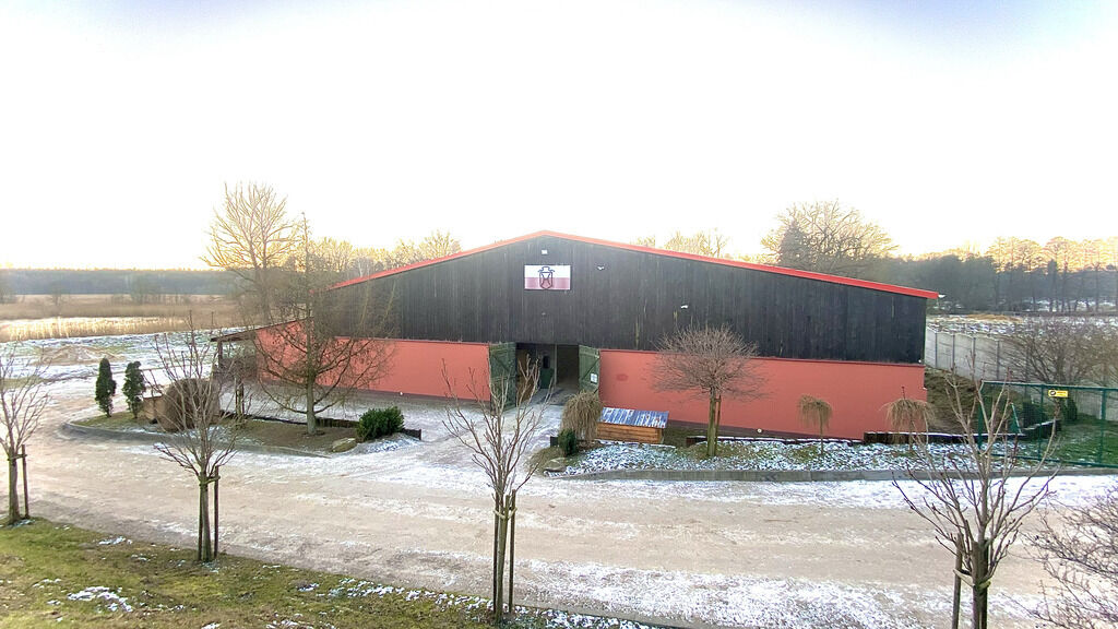 - Hala o wymiarach 65x25 metrów z podłożem kwarcowym i ze